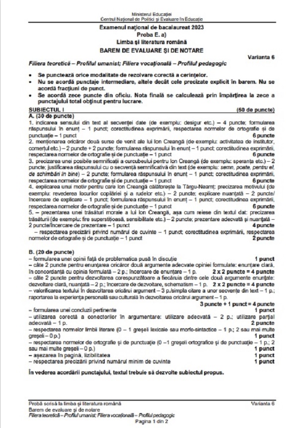 Citește și: Subiecte Română BAC 2023: Verifică online subiectele în format JPG. Baremul de corectare, pe Edu.ro