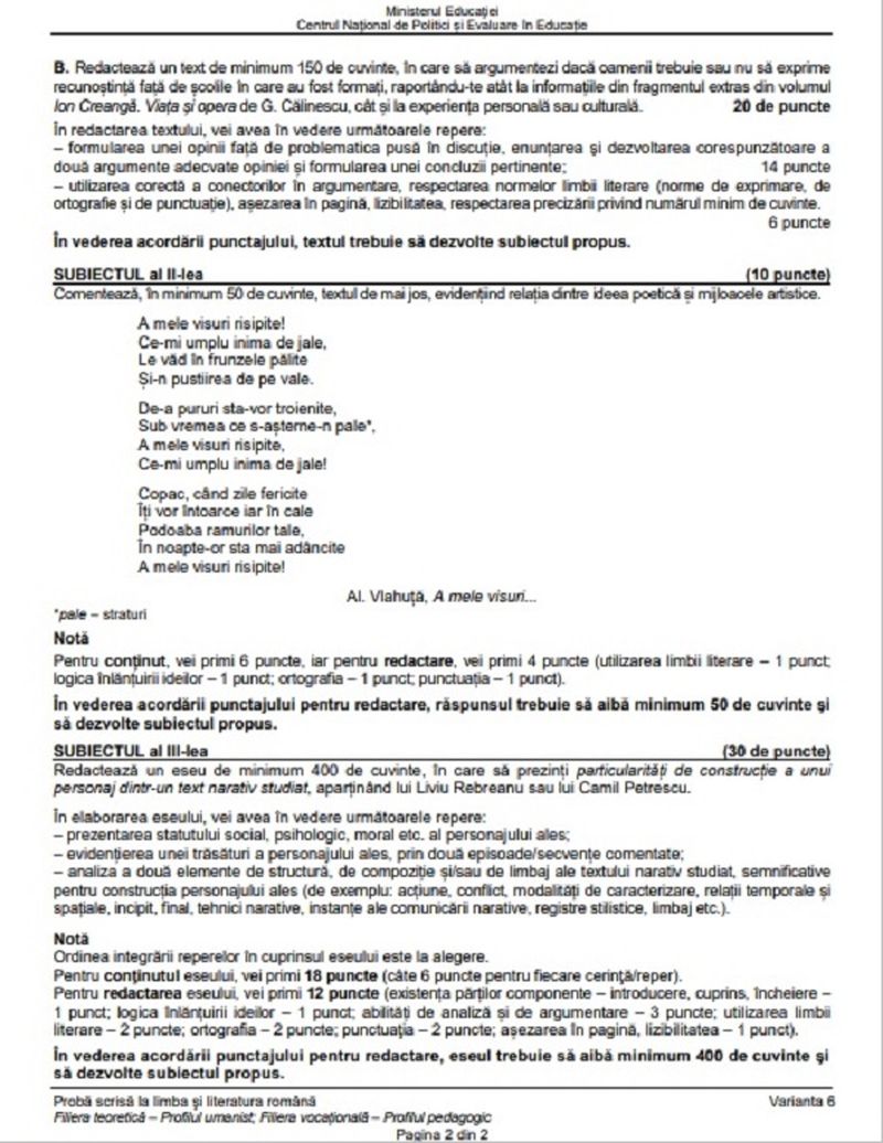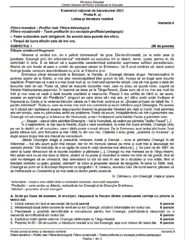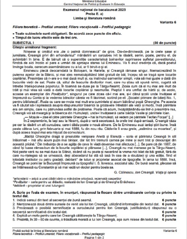 6 din 14 | Edu.ro Subiecte Română BAC 2023. Subiectele primite de candidați! Vezi ce a picat la subiectul al III-lea la real și uman!
