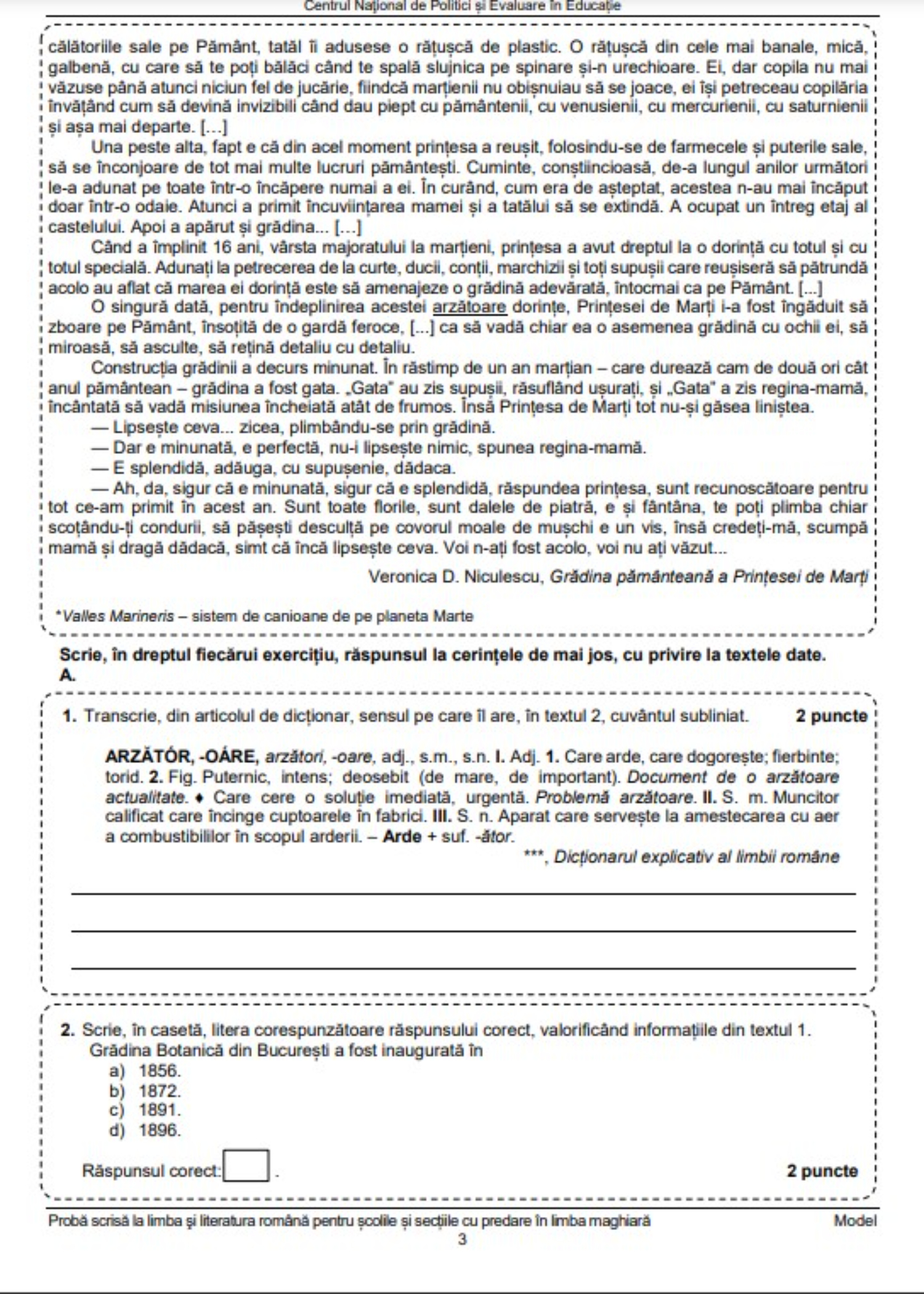 3 din 8 | Edu.ro Subiecte Română Evaluare Națională 2023. Ce subiecte ar putea pica?
