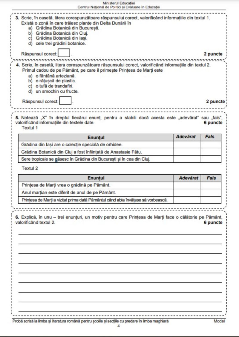 4 din 8 | Edu.ro Subiecte Română Evaluare Națională 2023. Anunț important pentru elevi!