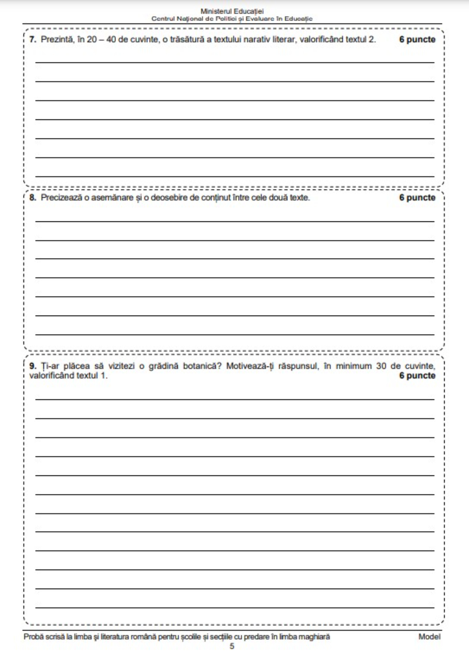 5 din 8 | Edu.ro Subiecte Română Evaluare Națională 2023. Anunț important pentru elevi!