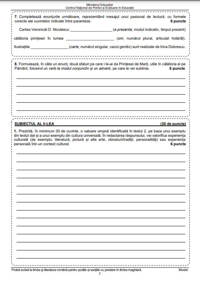 7 din 8 | Edu.ro Subiecte Română Evaluare Națională 2023. Anunț important pentru elevi!