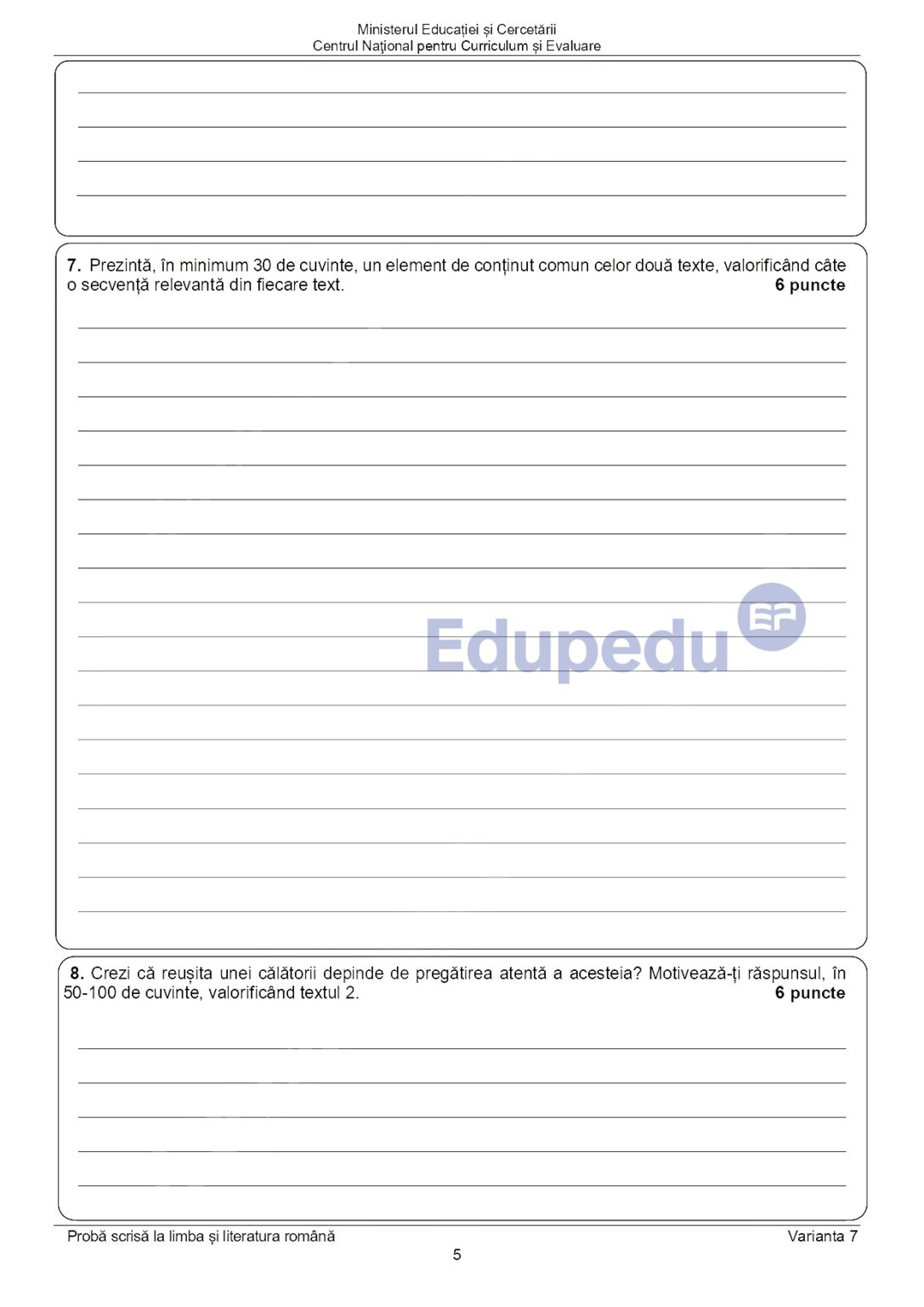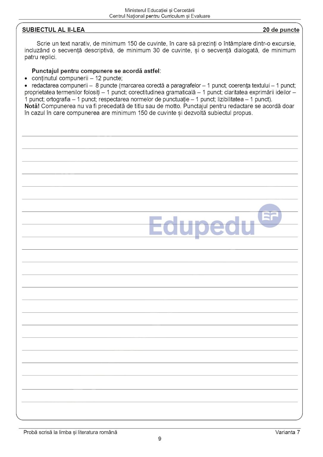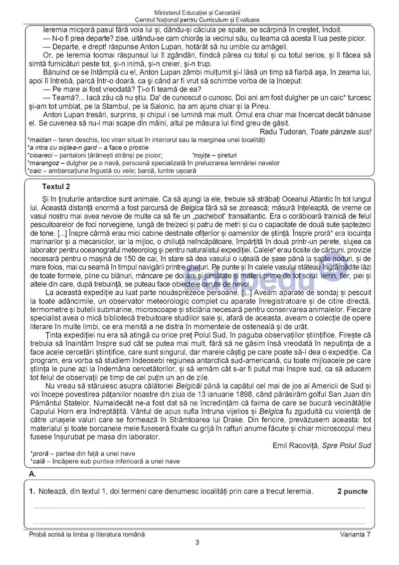 7 din 11 | EDU.ro Subiecte Română Evaluare Națională 2025: La ce oră se publică baremul de corectare?