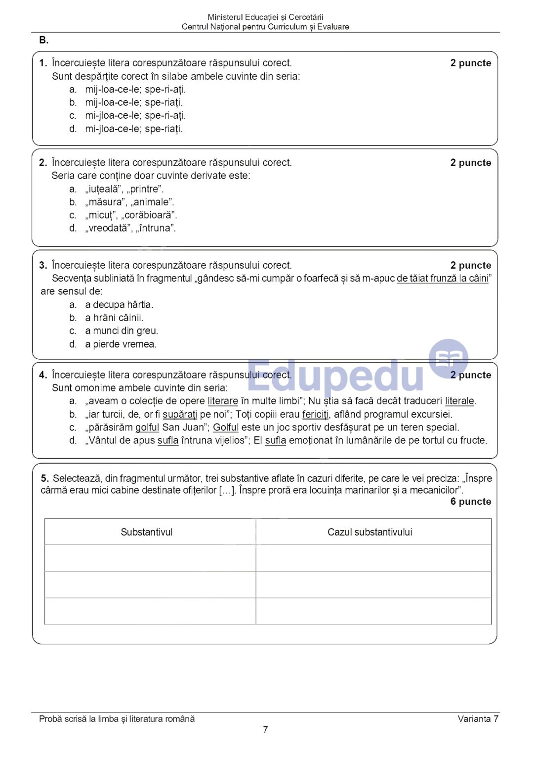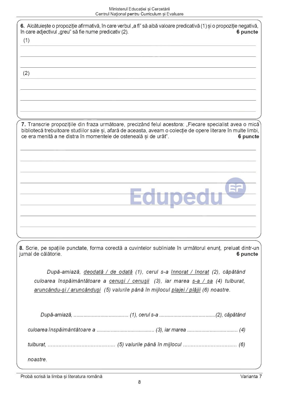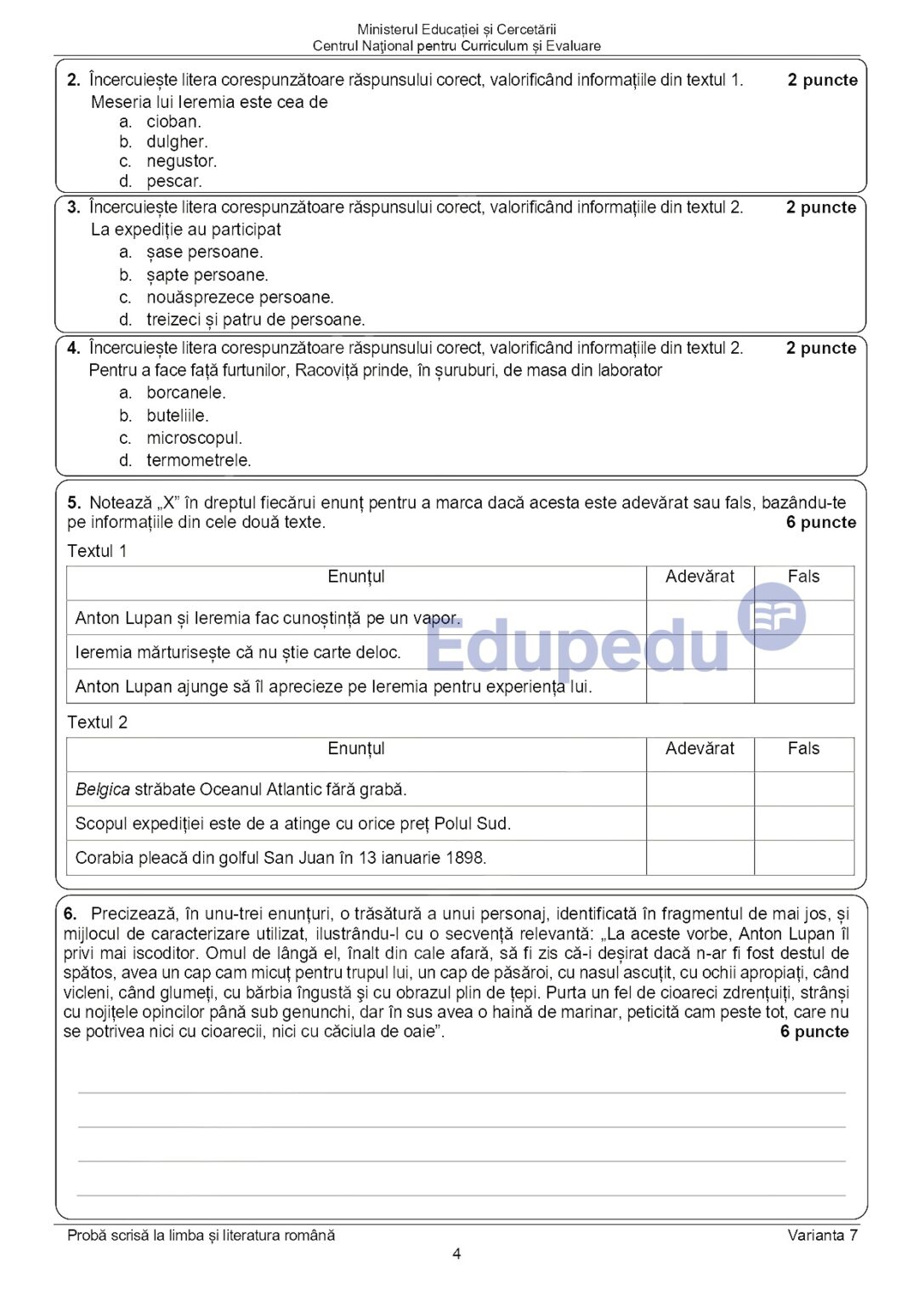 7 din 11 | EDU.ro Subiecte Română Evaluare Națională 2025: La ce oră se publică baremul de corectare?