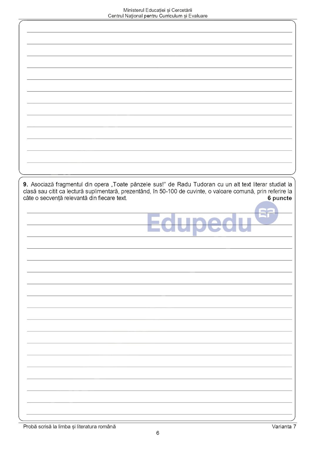 6 din 11 | EDU.ro Subiecte Română Evaluare Națională 2025: La ce oră se publică baremul de corectare?