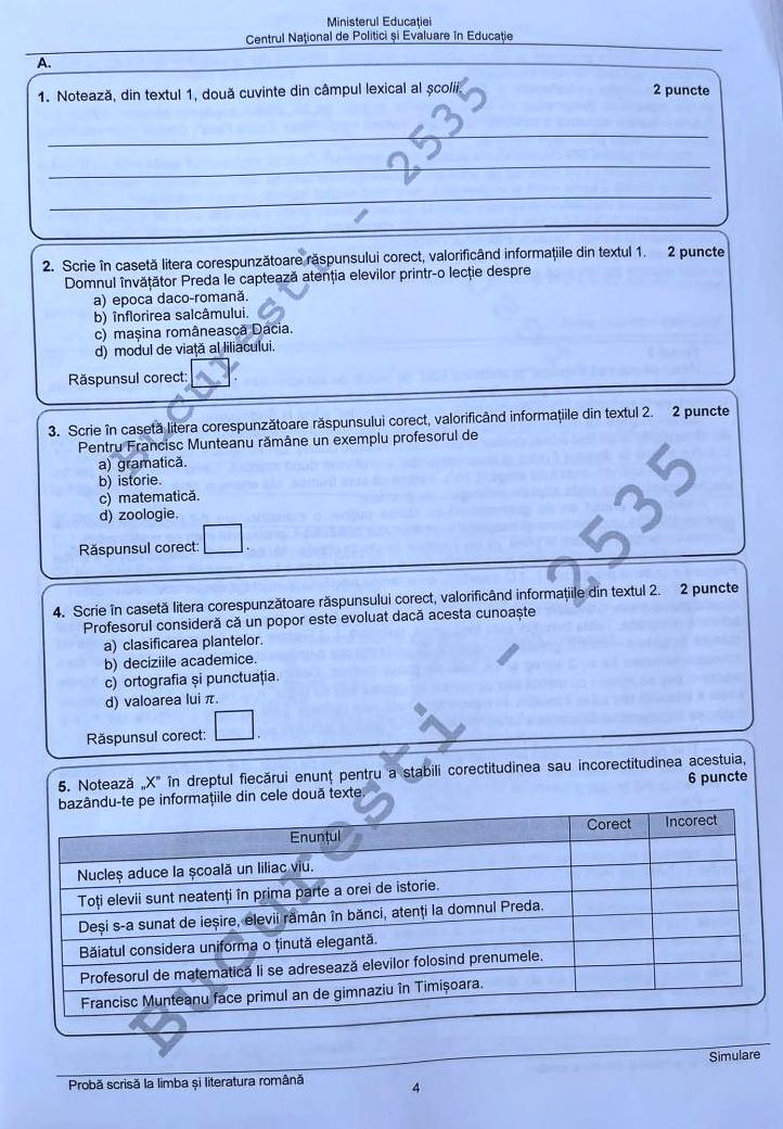 4 din 9 | Edu.ro Subiecte simulare Evaluare Naţională 2022 Română: Ce au primit elevii de clasa a 8-a? Barem de corectare