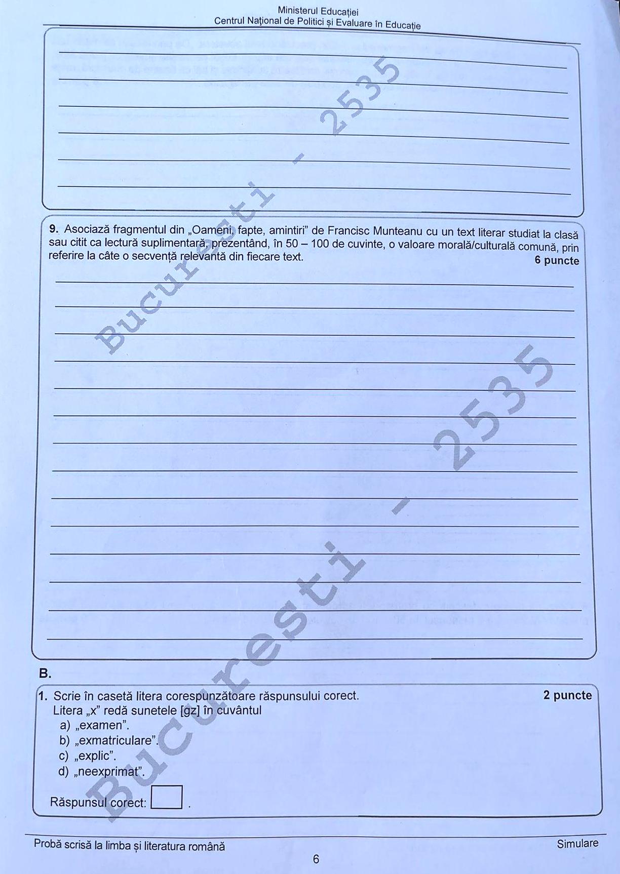 6 din 9 | Edu.ro Subiecte simulare Evaluare Naţională 2022 Română: Ce au primit elevii de clasa a 8-a? Barem de corectare