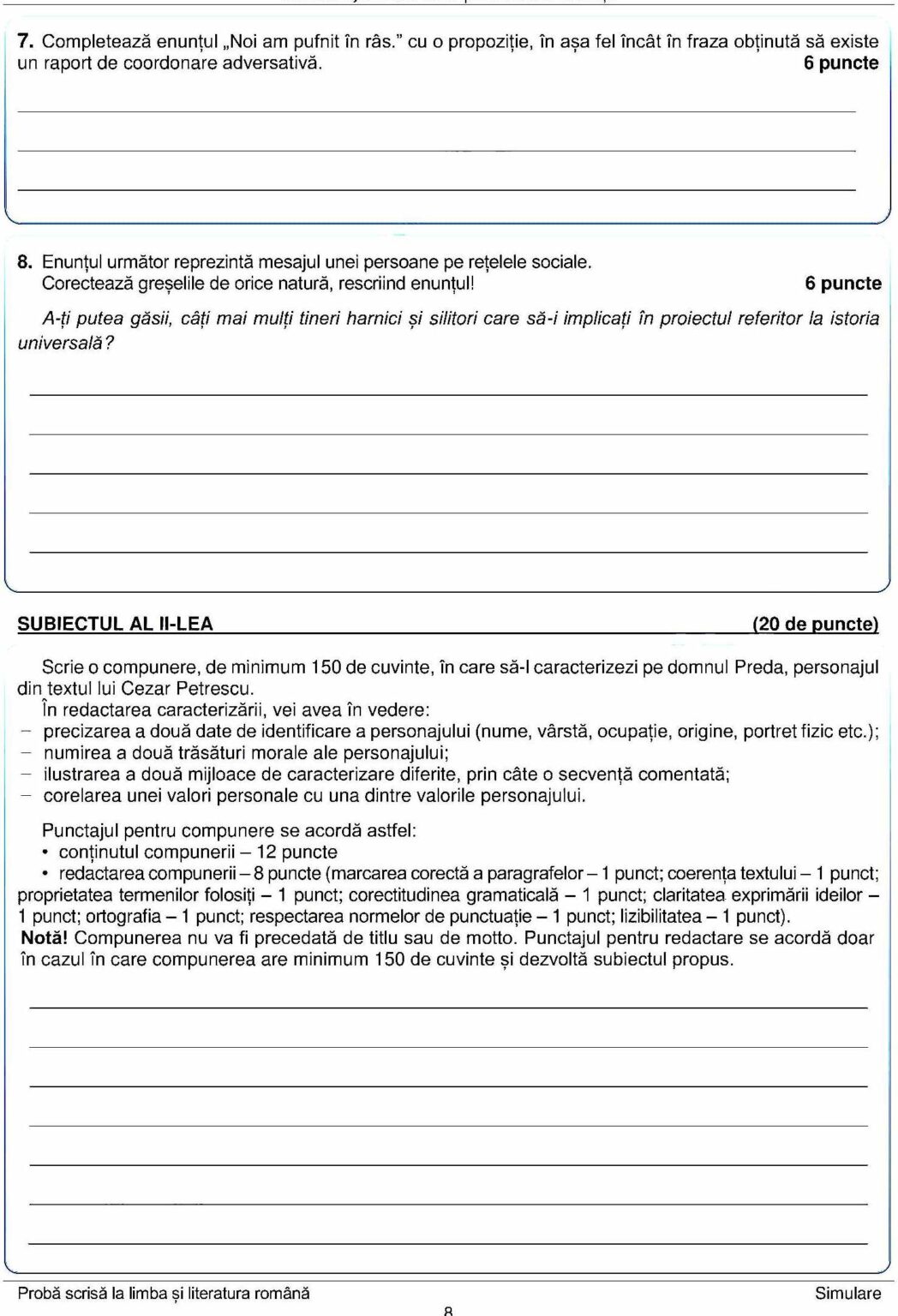UPDATE: După terminarea simulării la Română Evaluarea Naţională 2022, vom publica subiectele în acest articol.