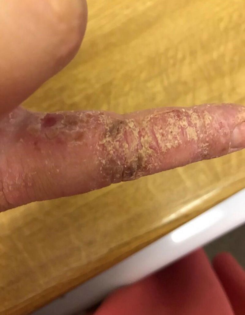 Acum, efectiv a simțit cu i-au luat foc mâinile, iar degetele sale sunt distruse de această cremă.