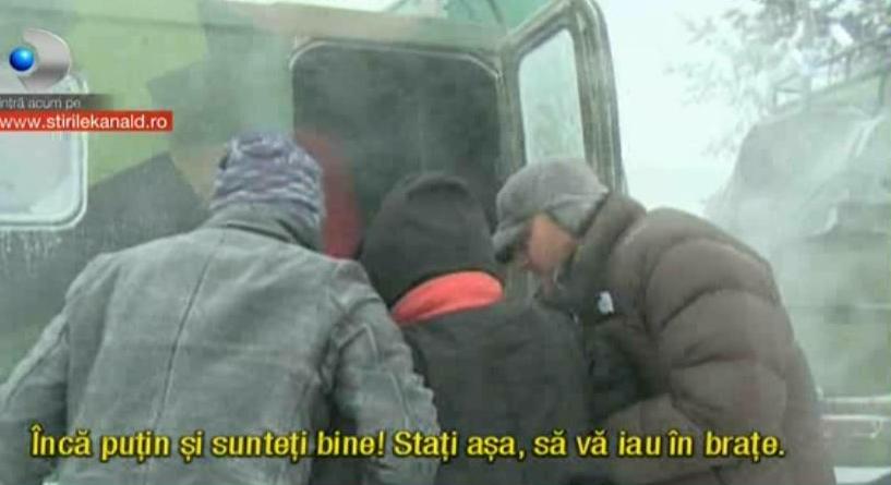 Sunt imagini filmate in plina urgie, cand viscolul era hotarat sa rada totul in jur. Doua gravide sunt scoase ca prin minune din ghearele mortii de pompierii din Baneasa. In timpul operatiunii de salvare, pe una dintre femei o macina chinurile facerii.