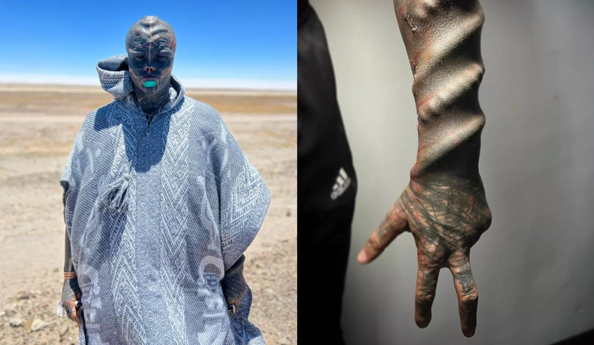 În ultimii 10 ani, bărbatul în vârstă de 33 de ani a suferit modificări corporale extreme, asumându-și riscuri uriașe, inclusiv să orbează în timp ce își tatua globul ocular.
