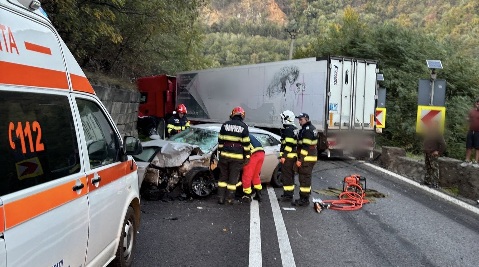 În impactul de pe Valea Oltului au fost implicate o mașină și un camion.