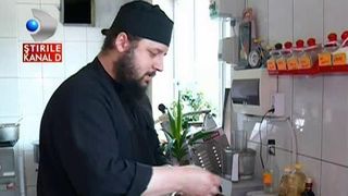 Este preot, pictor dar si bucatar desavarsit, iar ceea ce nu poate desena cu pensula, coloreaza in farfurie. Parintele Efrem de la Manastirea Dervent face arta din gatit. ##VIDEO5623##