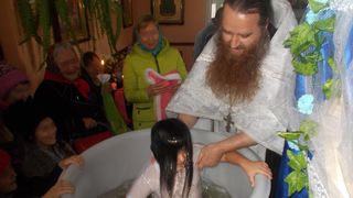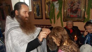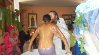 3 din 6 | El este preotul ortodox devenit celebru, pentru ca boteaza adulti! Persoanele intra in cristelnita si se lasa scufundate in apa de trei ori!