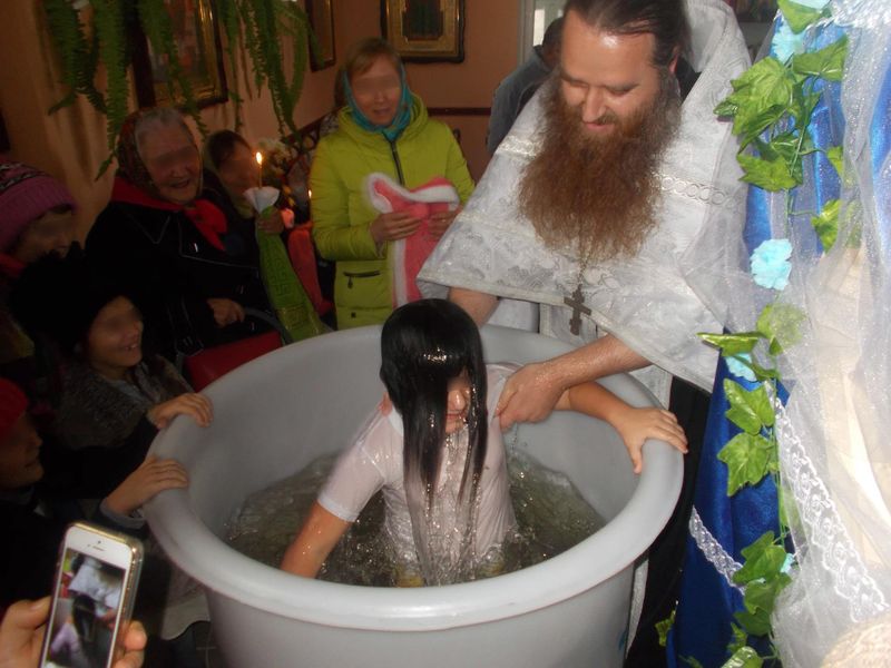 5 din 6 | El este preotul ortodox devenit celebru, pentru ca boteaza adulti! Persoanele intra in cristelnita si se lasa scufundate in apa de trei ori!