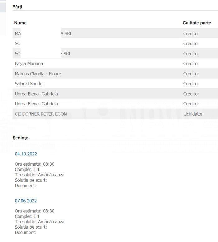 În acest proces, Udrea este citată în calitate de creditor al firmei Băile Boghiș SRL. Se pare că procesul va continua la toamnă, după ce administratorul special va pune la dispoziția instanței lista cu datoriile pe care Băile Boghiș SRL le are către mai multe persoane fizice și juridice, printre care și condamnata Elena Udrea.