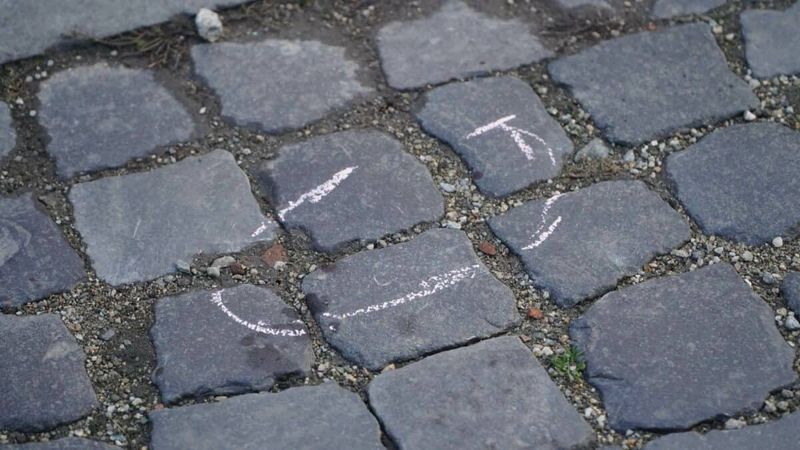 Dalele de pe strada Pietrarilor sunt acum pline de sângele băiatului. În zonă pot fi observate și semnele pe care le-au făcut polițiștii în momentul investigațiilor.