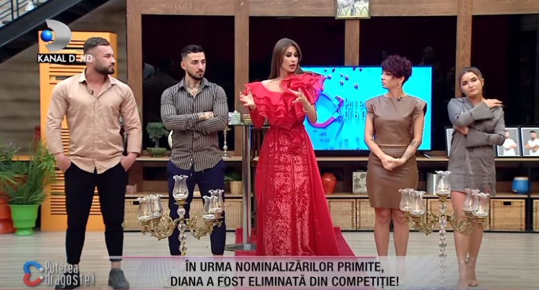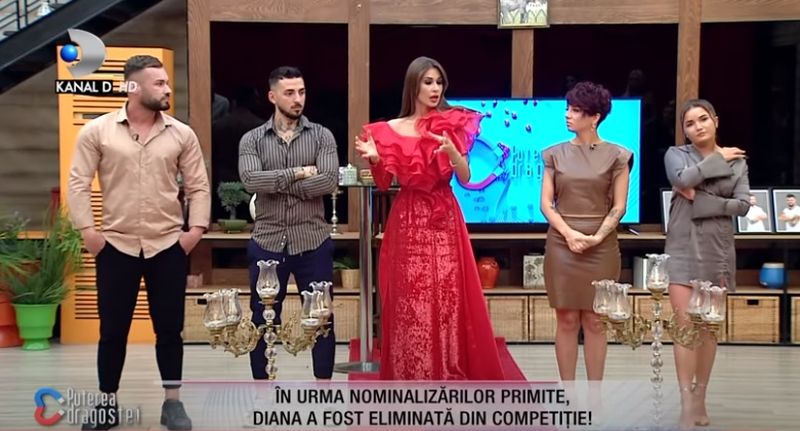 În urma nominalizărilor făcute de ceilalți concurenți, Diana a fost desemnată să părăsească competiția "Puterea Dragostei". "Diana, ai plecat, te-ai întors, acum pleci din nou. Regreți ceva?", a întrebat-o moderatoarea emisiunii Cristina Mihaela Dorobanțu.