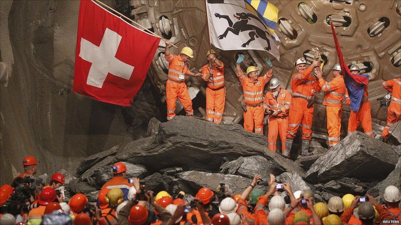 Elvetia a inaugurat recent tunelul Gotthard care strapunge Alpii Elvetieni la o adancime de 2 kilometri si masoara o lungime de 57 de kilometri. Tunelul feroviar uneste liniile ferate dintre portul olandez Rotterdam si portul italian Genova si va putea fi utilizat din luna decembrie.