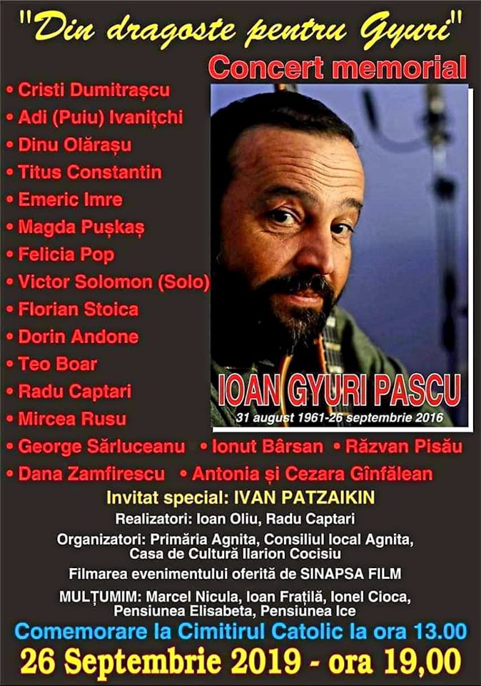 „Au trecut 3 ani de la plecarea ta, dragă Gyuri... Noi, colegii şi prietenii tăi suntem aici, la Agnita, unde vom cânta şi ne vom aduce aminte de tine, ca în fiecare an! Dumnezeu să te odihnească în pace şi în linişte. Nu te vom uita niciodată”, au postat cei care l-au pomenit pe Gyuri Pascu. Acum