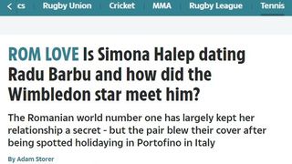 “Simona Halep şi Radu Barbu s-au cunoscut prin prieteni comuni din tenisul românesc. Apoi au fost surprinşi într-o escapada în Portofino. Cei doi au negat o relaţie, iar Simona Halep a anunţat că se concentrează pe cariera din tenis”, a mai relatat tabloidul britanic. “Întotdeauna, unui sportiv, când ajunge prea mare, încep să i se însceneze tot felul de lucruri. Simona este un copil normal, care trebuie să stea de vorbă.