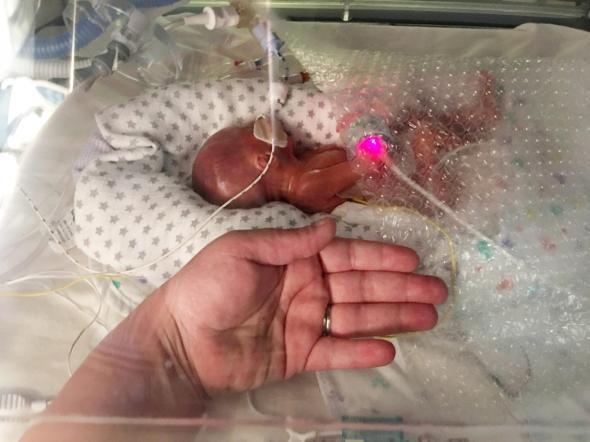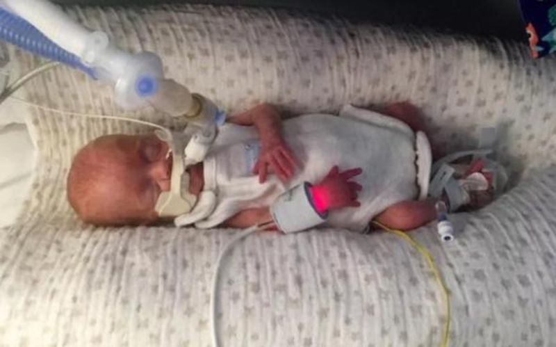 Micutul Austin Douglas s-a nascut prematur la 22 de saptamani si cantarea numai 500 de grame la nastere. Cu toate ca medicii nu i-au dat foarte multe sanse de supravietuire, bebelusul se reface.