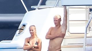 Erling Haaland, doar în slip, primește o mână de ajutor cu șuvițele de păr de la iubita sa îmbrăcată în bikini Isabel Johansen, la bordul unui iaht din sudul Franței, scrie Daily Mail.