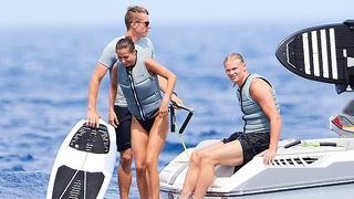 Perechea arăta de parcă petrecea cel mai bun moment al vieții lor, când au fost văzuți sărind în apă și bucurându-se de o înot înainte ca Haaland să-și arate abilitățile de schi nautic.
