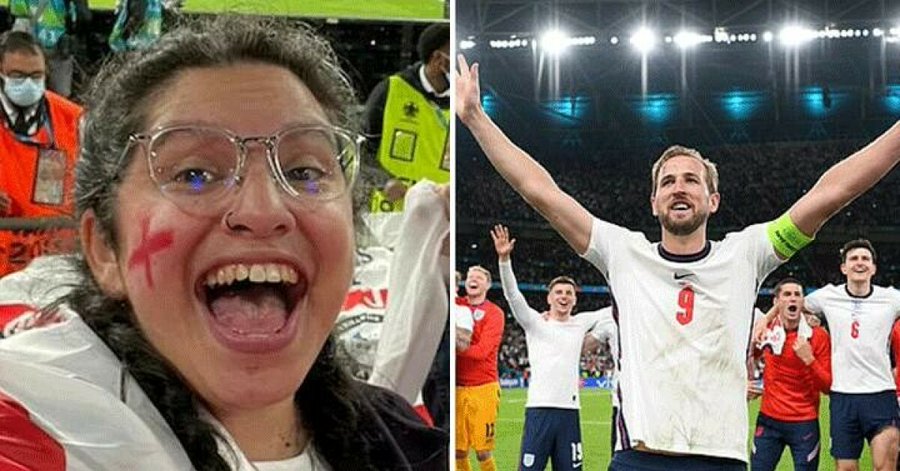 Producătoarea de conținut digital spune că a ajuns din întâmplare pe stadionul Wembley din Londra, după ce un prieten i-a oferit un bilet în ultimul moment la semifinala Angliei cu Danemarca.