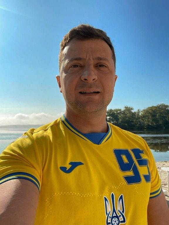 2 din 3 | Euro 2020, scandal între Ucraina și Rusia. Serviciul de presă prezidențial de la Kiev a lansat un selfie în care Zelensky s-a fotografia purtând tricoul.