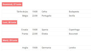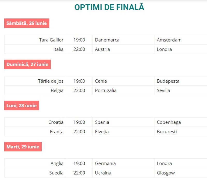 Ultimul meci din optimi care va avea loc pe Arena Națională se va desfășura luni 28 iunie de la ora 22.00.