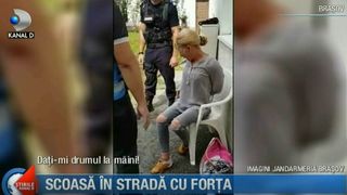 Evacuare cu scandal in centrul Brasovului. O femeie de 50 de ani a fost scoasa din locuinta in care statea, cu tot cu cei noua caini ai ei.