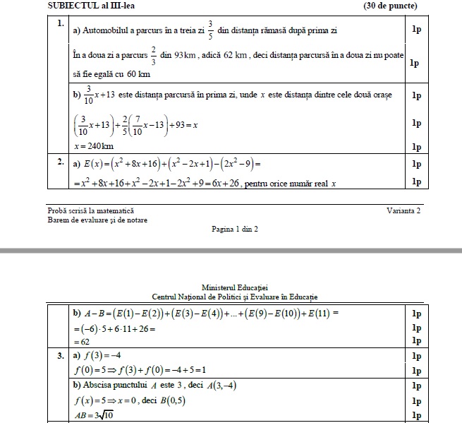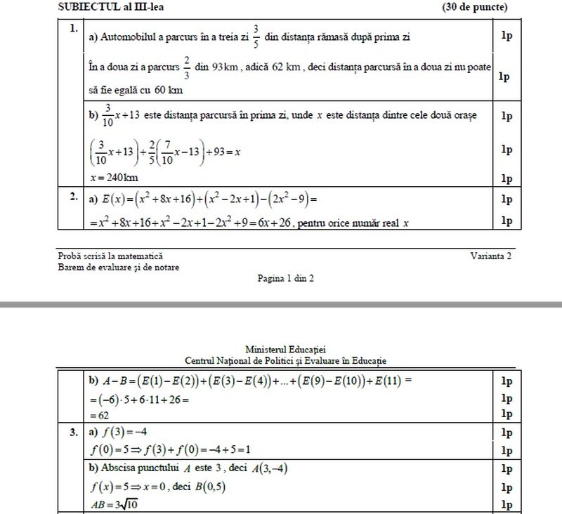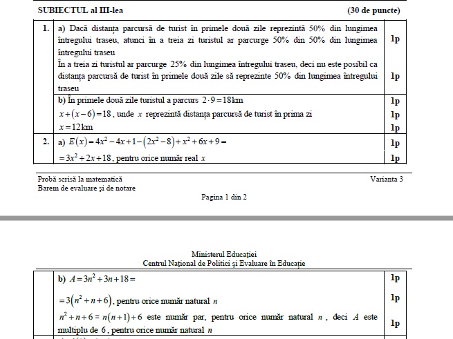 3 din 8 | Evaluare Națională 2021. Baremul de corectare la matematică