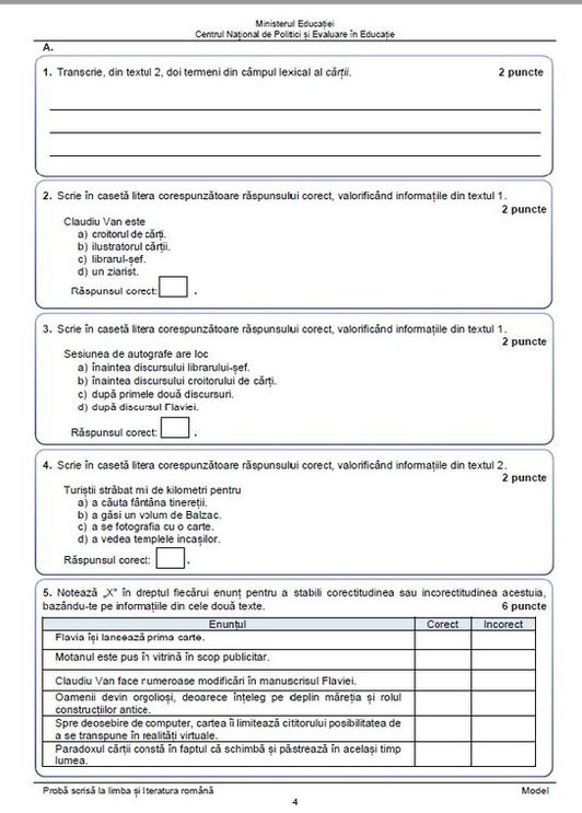 4 din 6 | Evaluarea Națională 2022: ce subiecte pot pica marți la Limba Română?