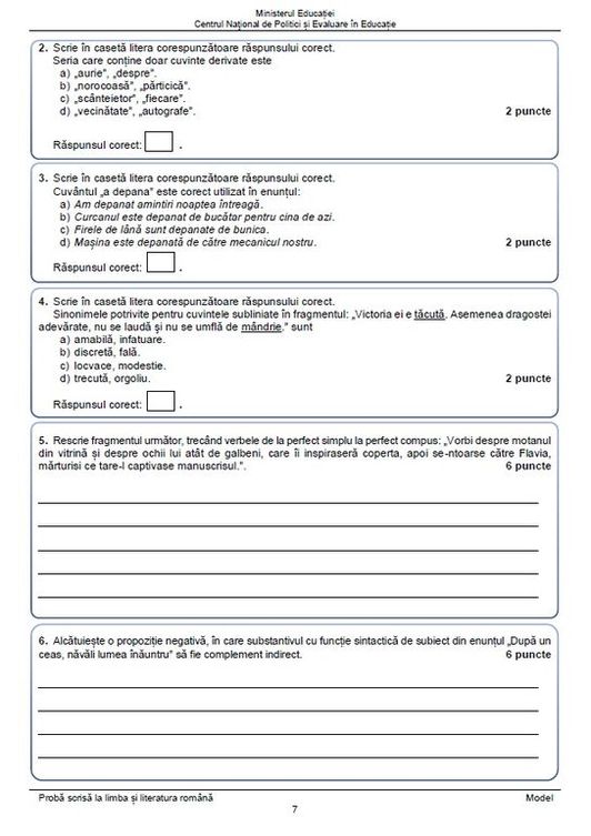 Mai multe modele de subiecte pot fi consultate pe site-ul Ministerului Educației, chiar aici .