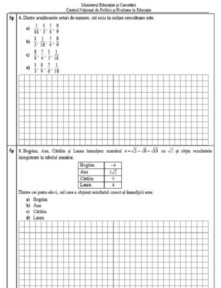 Ministerul Educației a publicat modelele de subiecte pentru examenul de Evaluare Națională de anul acesta. Acestea sunt tipuri de subiecte concepute pe modelul testărilor internaționale.