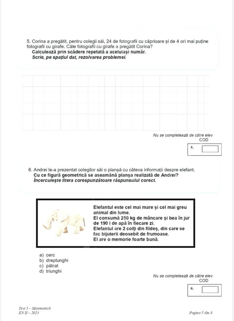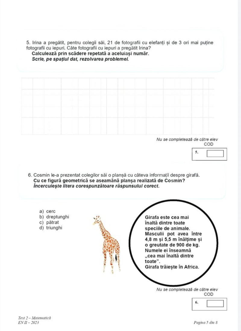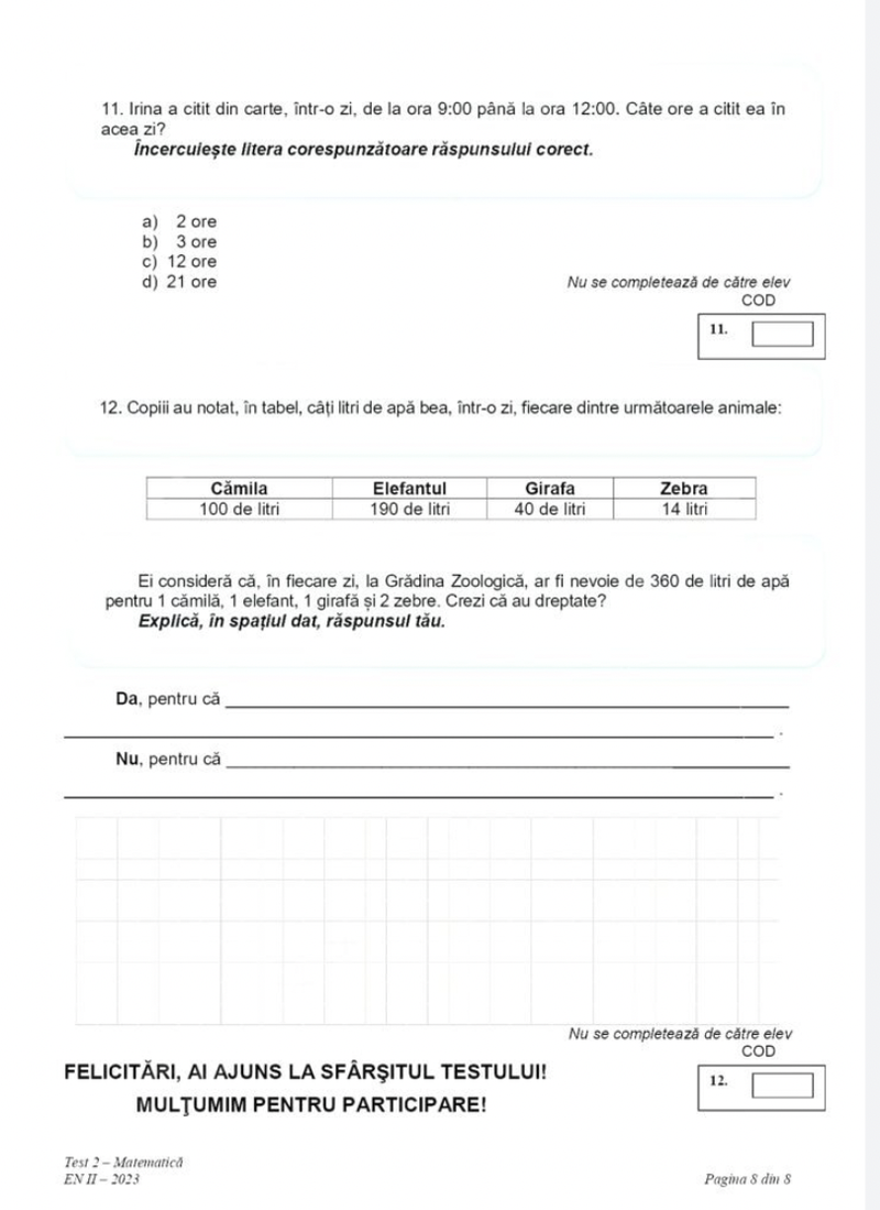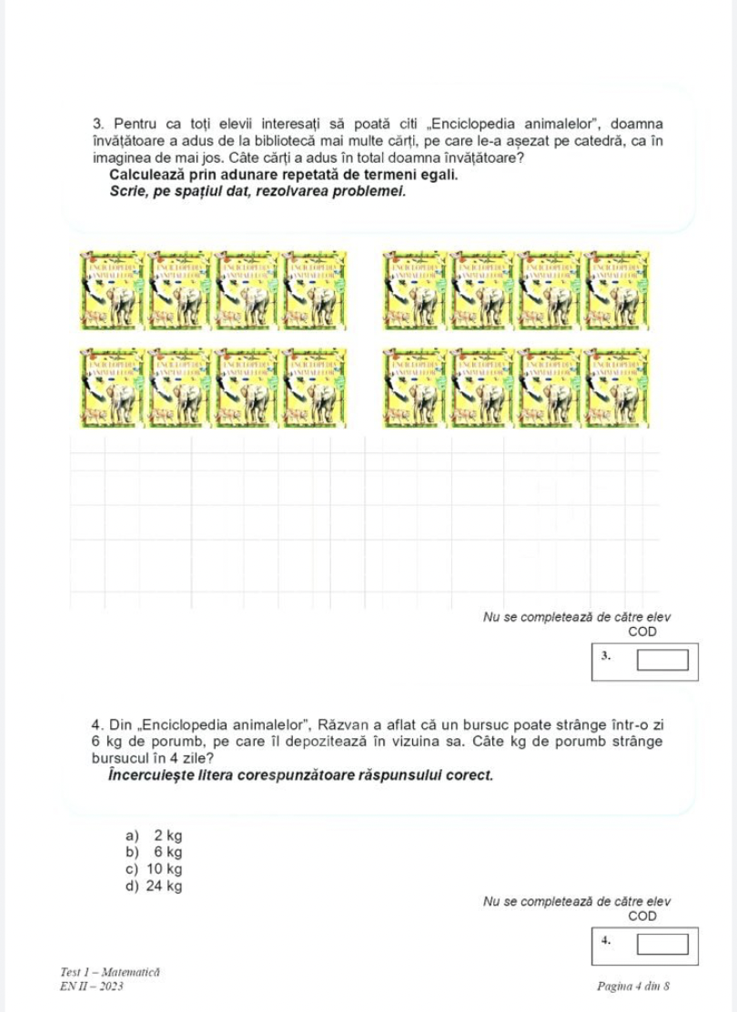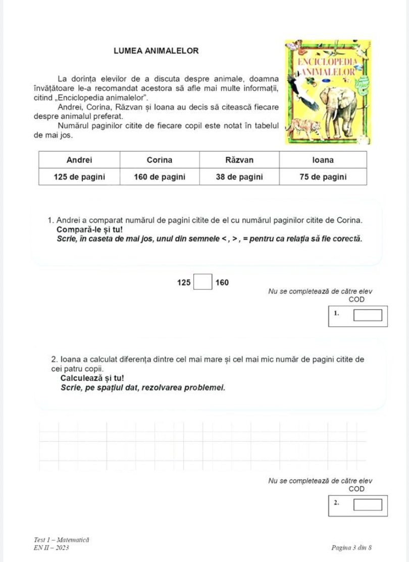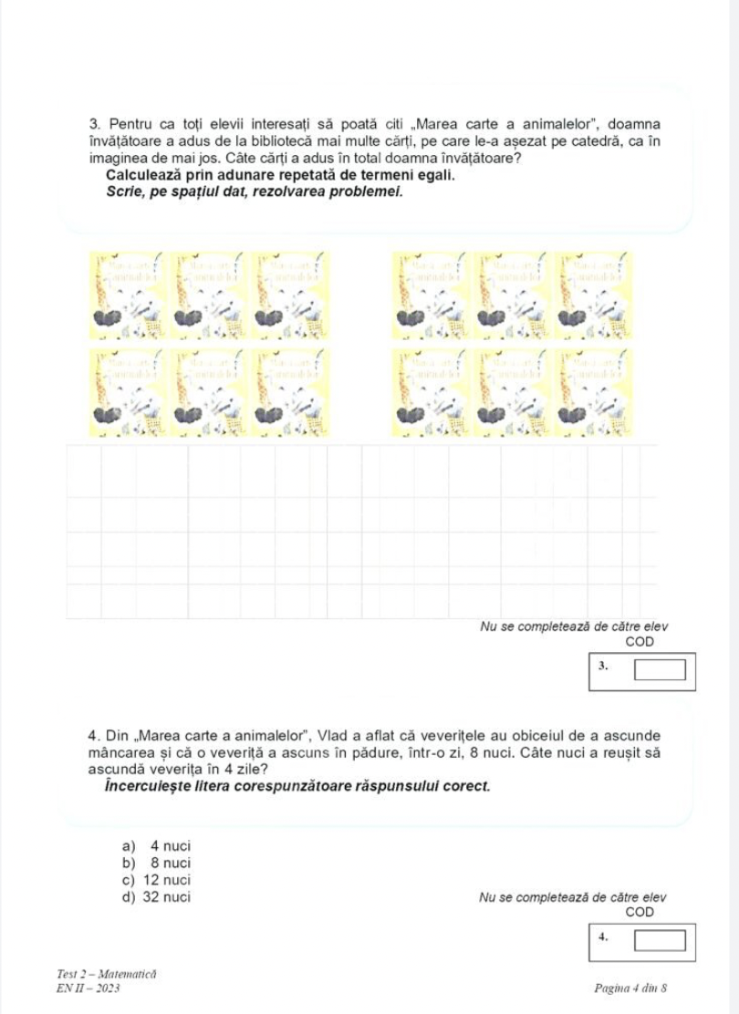 Ce subiecte au avut de rezolvat elevii de clasa a II-a la Evaluarea Națională 2023 la matematică