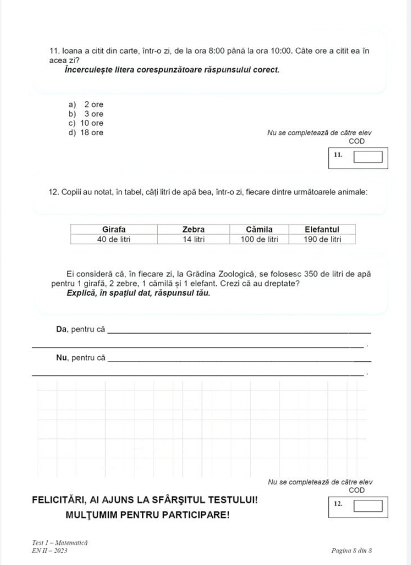 Citește și: Modele subiecte Evaluare Națională 2023. Cum arată testele de antrenament pentru elevii claselor a VIII-a?