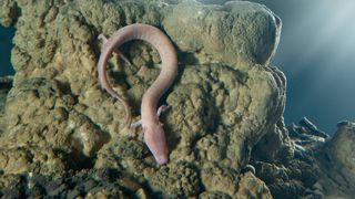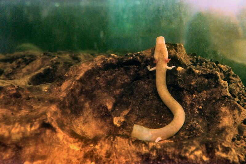 Aceste salamandre traiesc in acea pestera de aproximativ un secol, dar se reproduc cu mai putin succes, numai unul din fiecare 250 de oua eclozeaza cu succes. Atat sursele de lumina, cat si schimbarile puternice in chimia mediului lor acvatic, distrug imediat ouale. Din aceste motive, cercetatorii au creat un acvariu special.