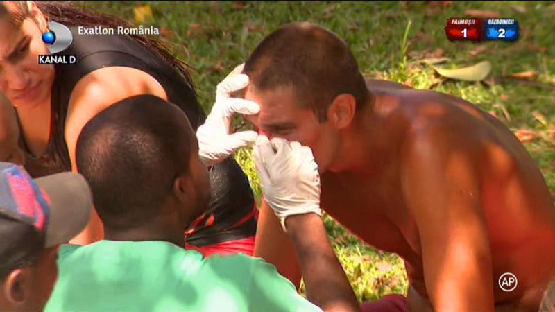 In timp ce depasea obstacolele, Faimosul a cazut cu fata intr-o plasa, iar cazatura i-a spart nasul. Medicii au intervenit imediat si l-au bandajat si i-au aplicat un unguent.