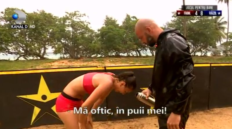Mădălina Predoi, concurenta echipei roşii, a avut o ieşire nervoasă la finalul meciului cu Războinica Beatrice Olaru. Neputând să ajungă până la finalul cursei, Beatrice a reuşit să puncteze două mingiuţe în coş.