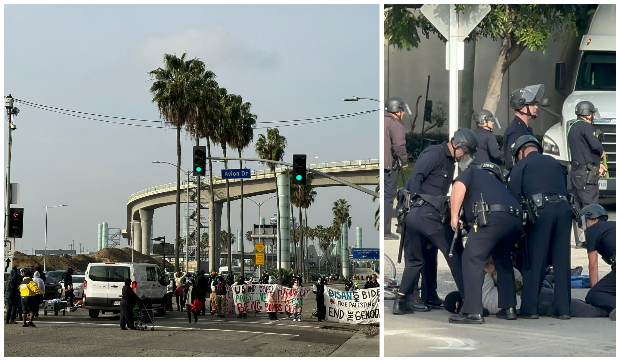 Imagini în exclusivitate de la intervenția polițiștilor din Los Angeles, după ce mai mulți susținători pro-palestinieni au organizat un protest în apropierea aeroportului internațional.