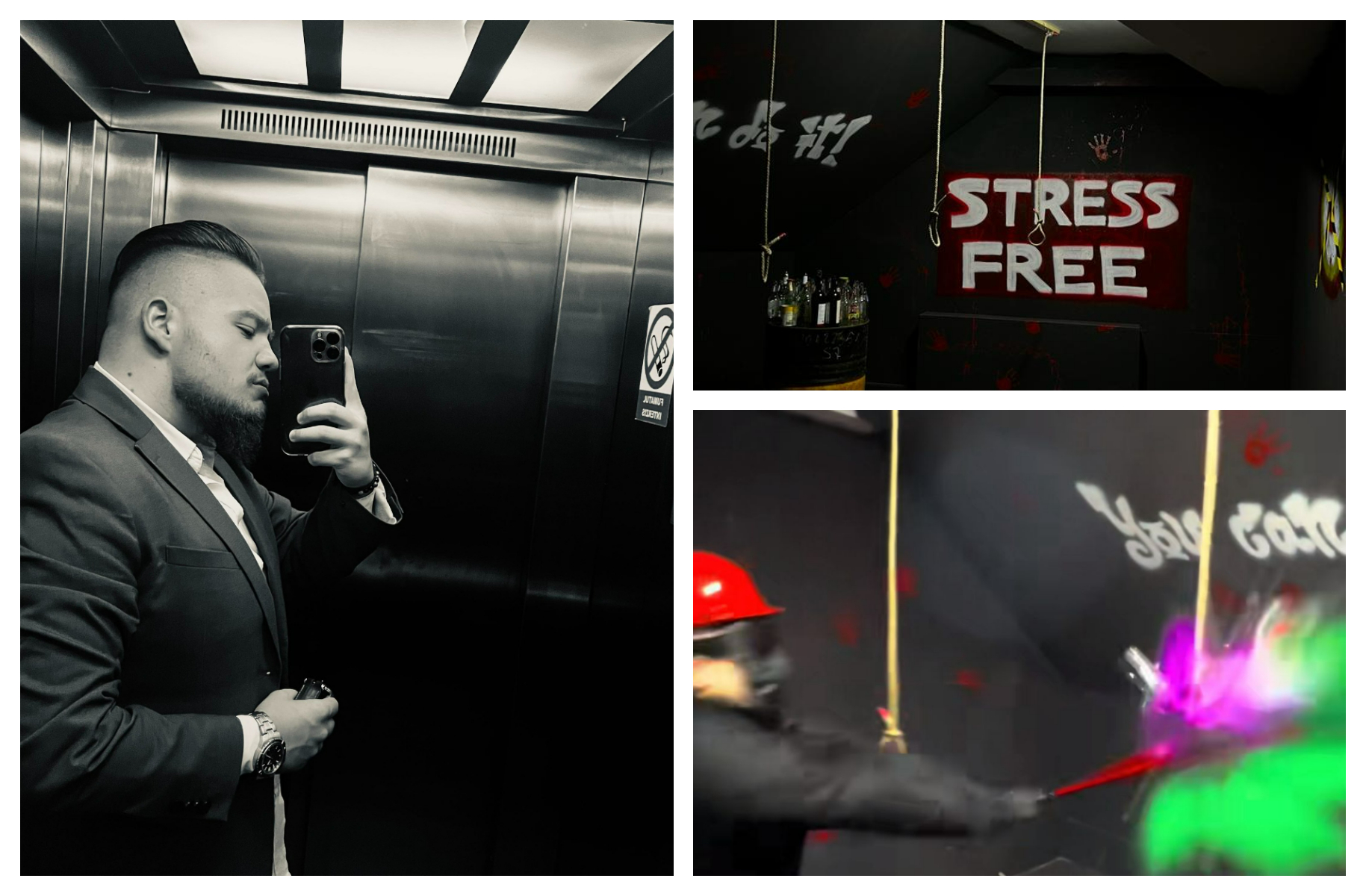 Un tânăr din București a dorit să readucă pe buze zâmbetul românilor. Acesta a creat mai multe camere, în care persoanele pot distruge totul în jur pentru a scăpa de stresul acumulat.