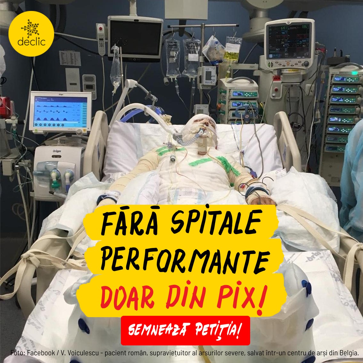 ”Vrem spitale la standarde europene pentru marii arși” se numește petiția lansată de comunitatea Declic. România este țara europeană cu cei mai mulți mari arși. În fiecare an, din aproximativ 10.000 de pacienți care ajung la spital cu arsuri, 1.400-1.500