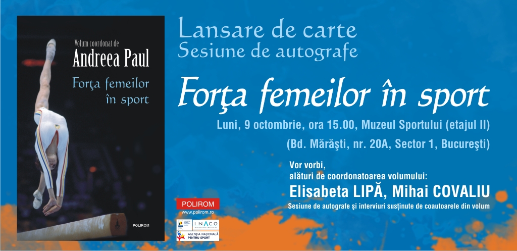 Volumul ”Forța femeilor în sport” va fi lansat luni, 9 octombrie 2023, de la ora 15:00, la Muzeul Sportului. Alături de Andreea Paul, vor vorbi și Elisabeta Lipă și Mihai Covaliu.
