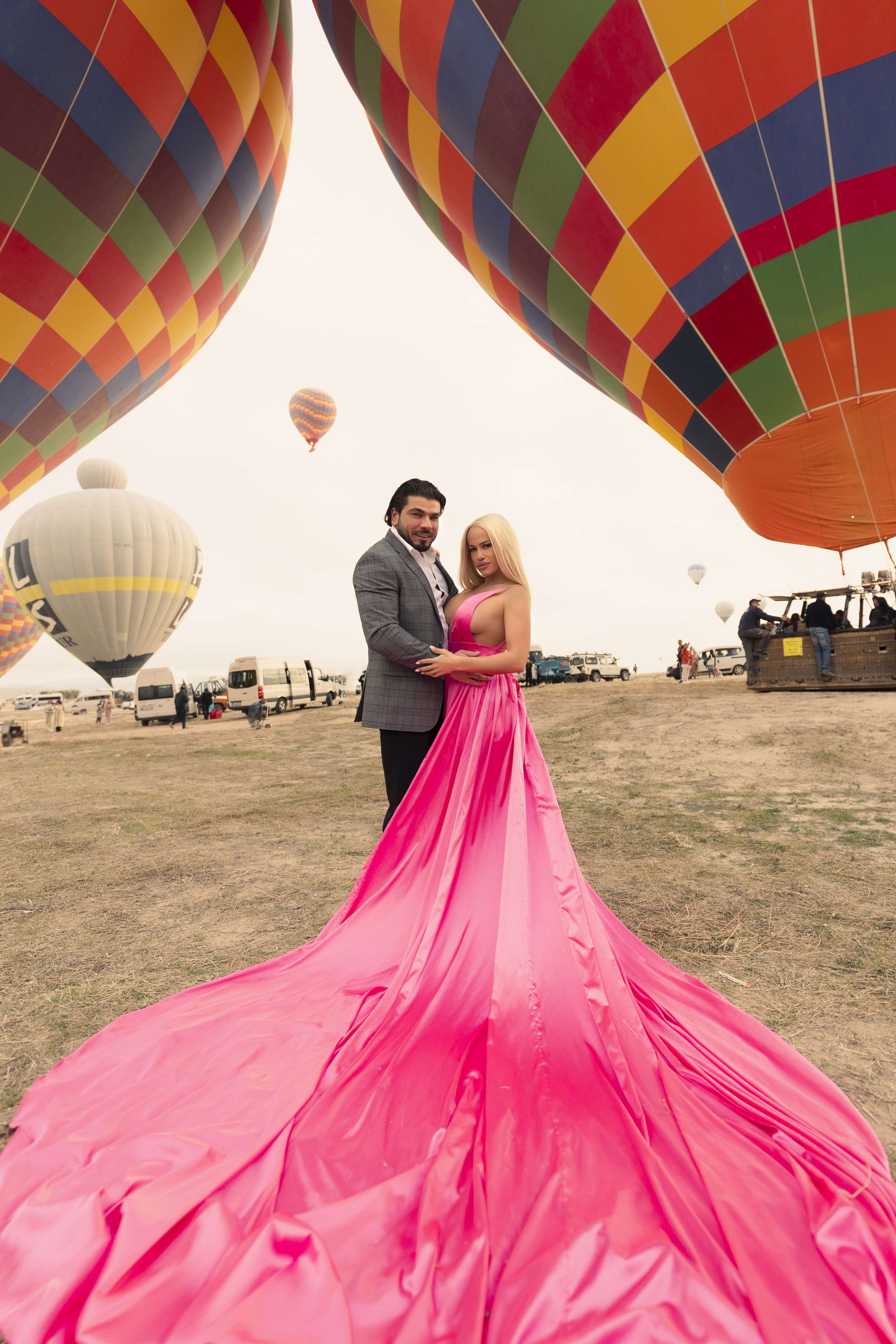 „ Mi-a pregatit o vacanta surpriza unde mi-a facut si o alta surpriza! Am avut parte de o experienta inedita, intr-o locatie in care zboara zeci de baloane. A pregatit un shooting foto cu un fotograf de acolo si a pus la cale o cerere in casatorie. A fost cred ca unul dintre cele mai frumoase momente din viata mea si nu pot decat sa ii multumesc pentru asta. Este o destinatie pe care voiam sa o vizitam de mult, el a vrut sa imi faca o surpriza, sa ma duca aici, in Cappadocia. Bineinteles ca m-am gandit ca ar fi superb, odata ajunsi acolo, sa facem si o sedinta foto, este foarte instragamabil locul.