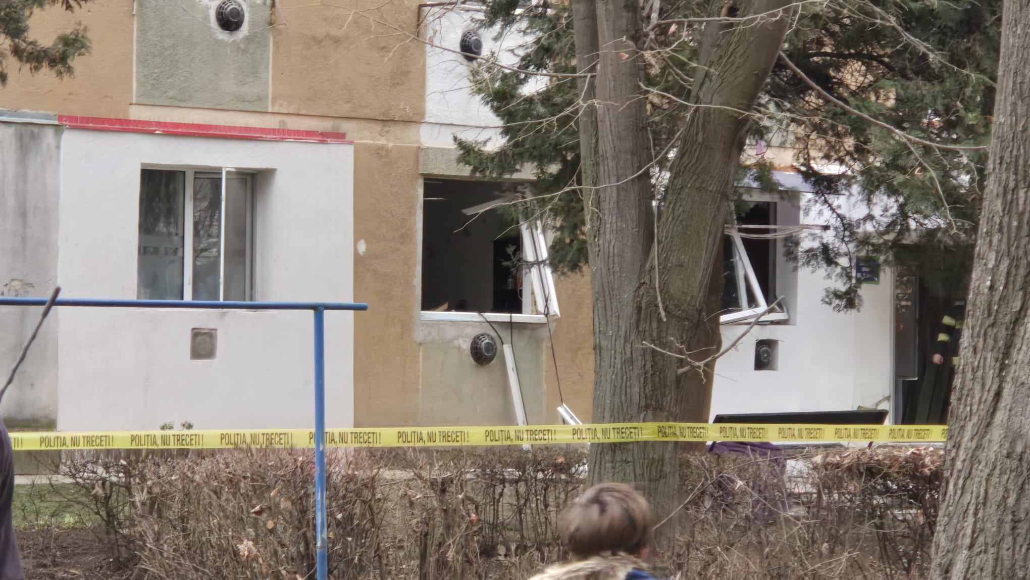 Explozie cumplită într-un bloc de garsoniere din Târgu Jiu. O femeie de 77 de ani a fost rănită și transportată la spital.