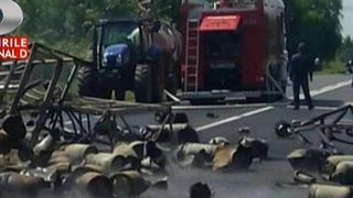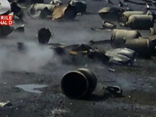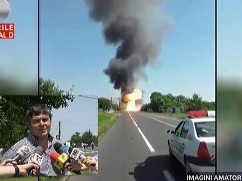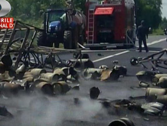 Doar o minune a făcut să nu asistăm la o tragedie de proporţii, ca în 2004! 800 de butelii au explodat în faţa caselor oamenilor din Mihăileşti. Totul a început după ce TIR-ului care le transporta i-a explodat cauciucul, iar cabina s-a aprins. A urmat o scenă de iad! Iată imaginile cumplite!