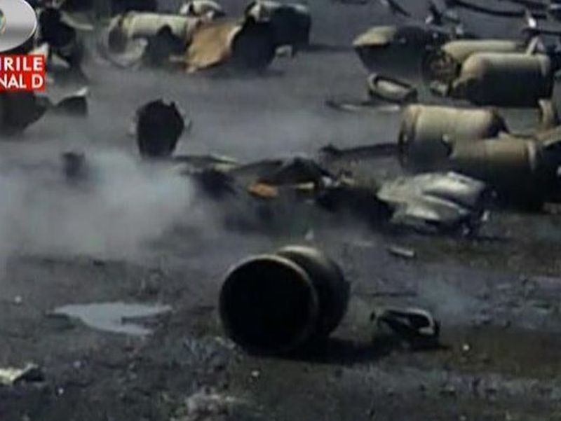 Una dupa alta se succedau exploziile la doar cativa metri de casele oamenilor. Suflul exploziilor a aruncat in aer bucati de metal, chiar si butelii intregi, la sute de metri distanta.
