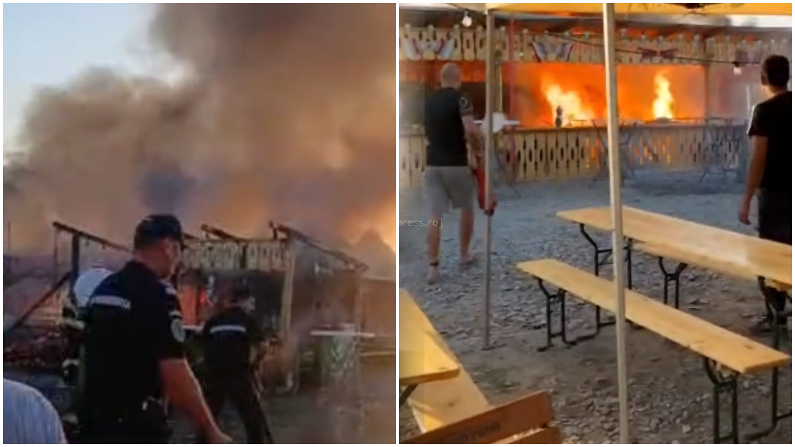 Explozie puternică la un bâlci din Olteniţa. O terasă a fost cuprinsă de flăcări, oamenii au intrat în panică